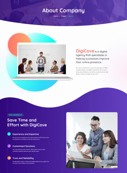 With the Digicove, you can easily create your own complete website. The inner pages have been optimally designed and arranged so that you can quickly and easily adjust your website to your needs.
